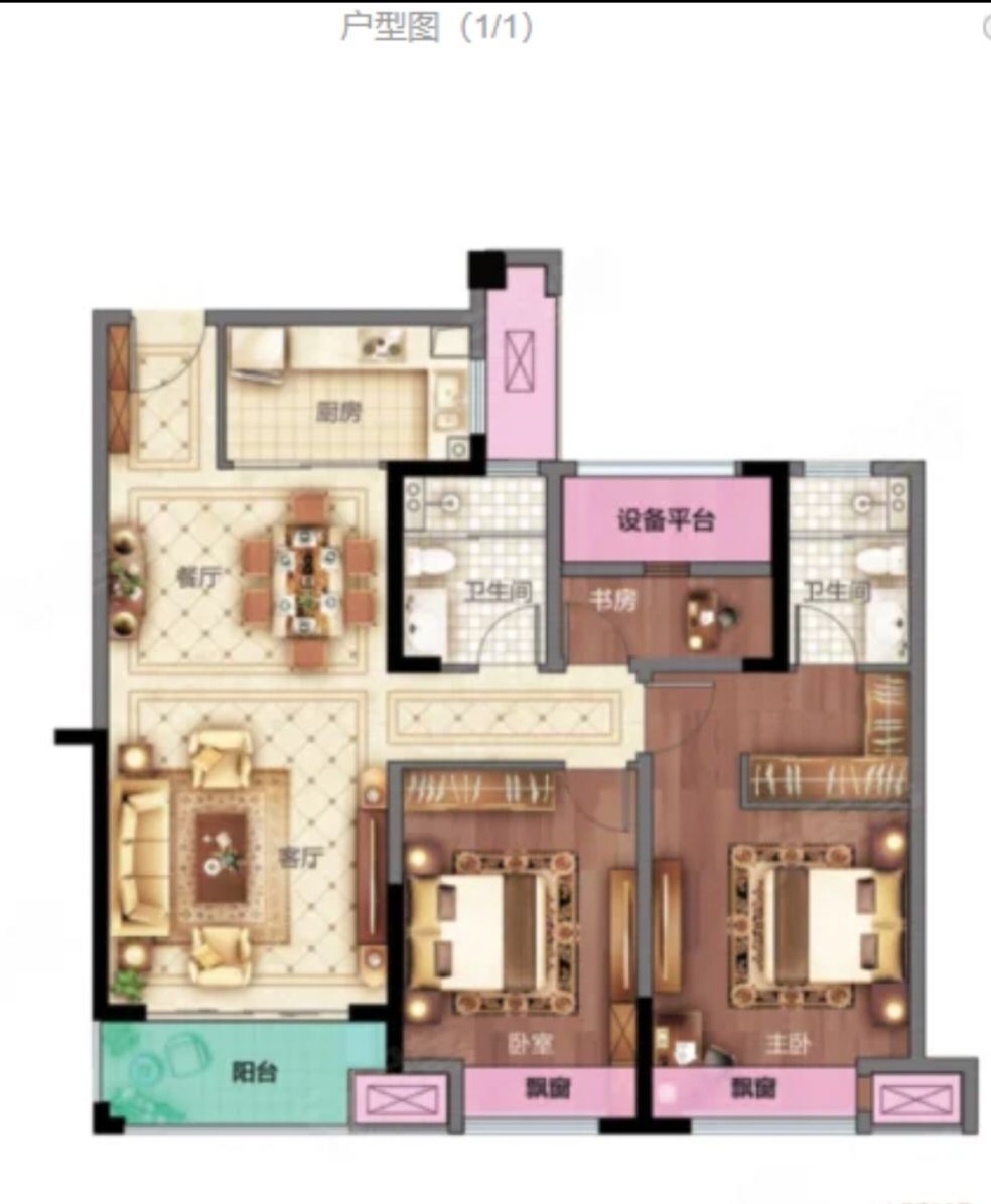龙湖卓越紫宸,3室2厅1卫,89平米