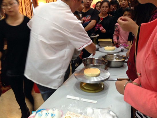 在古筝美女琴声悠扬《渔舟唱晚》声中,现场充满了诗情画意。因为今天是全天下母亲的节日,所以恒大特意邀来做蛋糕的师傅为在场的妈妈们做蛋糕,看看,妈妈们都看得多认真啊,是不是很有趣啊,连小编都跃跃欲试了呢。