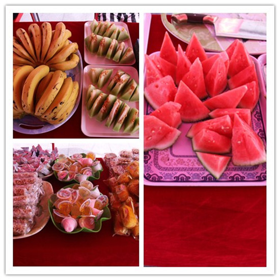 家长们和小宝宝们玩累了,还可以到休息区稍作休息,吃点工作人员为大家准备的各色水果和零食来补充体力哦。记者发现,现场准备的食物都很精美哦,很多小宝宝在餐桌前流连忘返呢。