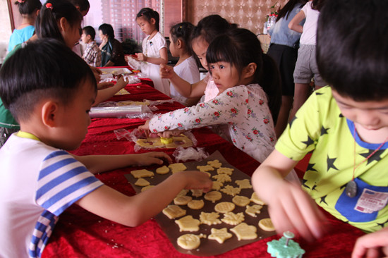 来到DIY饼干区域,记者一下子就被一阵浓浓的奶香味吸引了,记者定睛一看,原来这美妙的香味是从制作饼干的原料中散发出来的呀。如果说钓鱼还有爸爸妈妈们协助,那么做饼干就是宝宝们真正展现自己实力的时候了。