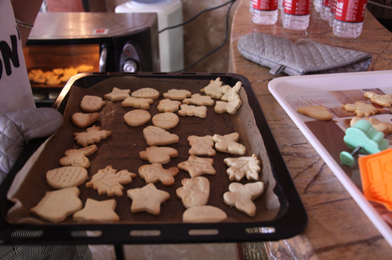 制作饼干开始了,宝宝们拿着工作人员统一分发的小工具和原料,在爸爸妈妈们的加油声中正式展开了大比拼。话虽如此,小朋友们很是很友爱的哦,小小年纪便懂得了友谊第一比赛第二的原则,他们你来我往,你帮我做一片叶子饼干,我再送你一片苹果饼干,让现场的大人们好不感动。