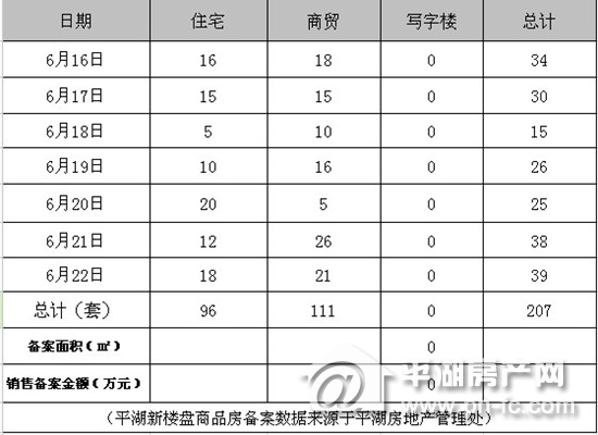 据平湖房产网统计,本周平湖共成交商品房约207套,其中普通住宅的成交量为96套,商贸的成交量为111套。 总成交量相比上周减少63套,其中住宅减少66套,商贸增加3套。