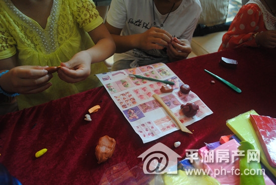 做彩陶的这边,老师先替小朋友们分好制作用的各色陶土和相关的小工具,然后就开始详细地向小朋友们说明制作的方法,虽然小朋友们都已经迫不及待地想要动手做了,可是想归想,对于老师的讲解听得还是很仔细的啊,毕竟这关系到之后自己的成果啊。
