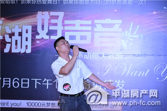 平湖房产网讯:用音乐的旋律感动平湖,用声音的美丽感动世界。恒大名都平湖好声音海选赛于7月6日在恒大售楼处隆重上演,活动吸引了众多音乐好手前来参加,只要你热爱音乐,就能在平湖好声音这个舞台上绽放光芒。