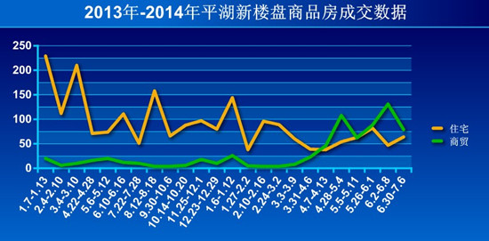 值得注意的是,2014上半年度商贸成交量呈现逐月上升趋势,从几十套到两三百套,再到6月份的成交***——514套,确实颇耐人寻味。上半年住宅则相对平稳,涨幅、跌幅都不太大。