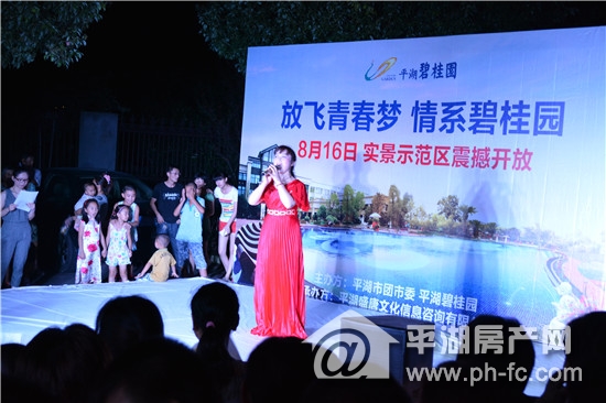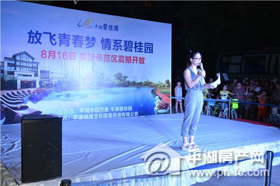 平湖房产网讯:8月13日,由平湖市团市委主办,平湖盛唐文化承办,平湖碧桂园独家赞助,以“青春放飞梦想”为主题的平湖碧桂园乡镇大型巡演活动正式拉开帷幕。首站走进钟埭,接下来还会陆续走进新埭、广陈、新仓、全塘、黄姑、林埭、乍浦、曹桥等各个乡镇,民众们在了解碧桂园的同时,还能享受到这一份盛夏里的文艺大餐!