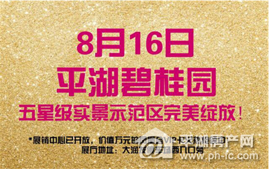 目前万众期待的平湖碧桂园示范区开放倒计时3天, 8月16日,全新生活时代的大门也将会随着这座理想之城的华丽绽放而开启。(查看详情)届时好莱坞大牌电影明星惊现平湖,桌球争霸赛、明星羽毛球赛火热启动,人鱼传说、冰雪节、捕鱼达人、幸运大抽奖、烟火晚会等活动精彩不断,期待您携亲友同来!此外碧桂园大型乡镇巡演将马不停蹄,8月14日,第二站——走进新埭,记得关注哦!
