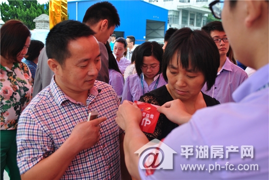 记者在签约区外采访刚完成签约的李先生和李太太。李先生激动地告诉记者:“一直担心品牌开发商的产品价格太高,没想到开盘价格给了我们很大惊喜,我就买了82方的洋房,适合我们这种新婚夫妻。”