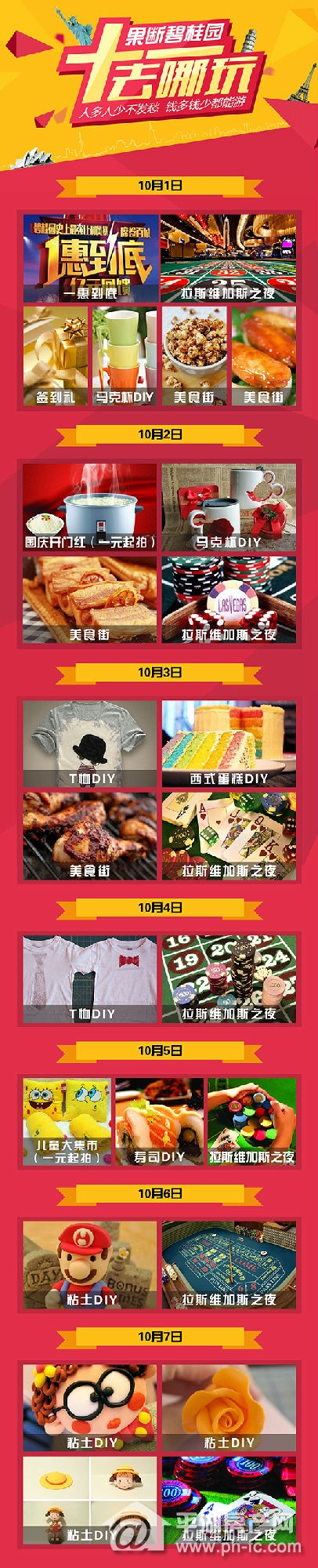 平湖房产网讯:国庆七天乐,天天乐不停!10月1日至7日,平湖碧桂园陪你“不嗨不归”!马克杯DIY,寿司DIY,西式蛋糕DIY,T恤DIY,粘土DIY,美食街,一元起拍,拉斯维加斯之夜••••••更有“一惠到底”现场抢答送好礼!来了,记得带券哦!对了,还有500万幸运大奖等你拿!