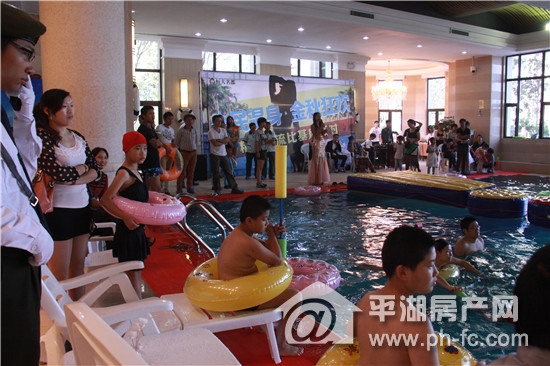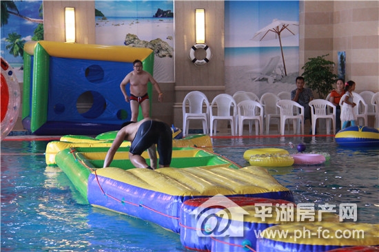 既然是泳池派对,那水上游戏项目当然是少不了的了。水上穿越游戏引得在场的大人、小孩们都心动不已。游戏内容很简单,只要依靠水面上的工具,从泳池一端到达另一端即可。用的时间最少的选手即为胜出者,现场每位参加比赛的选手都能获得精美礼品一份哦。