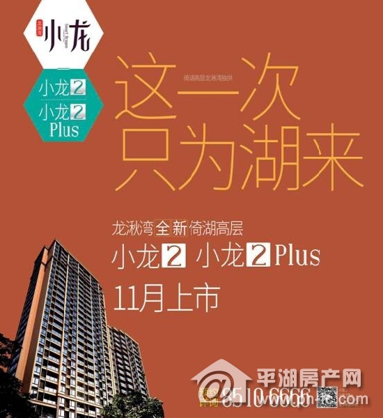 不错!龙湫湾新品——倚湖高层,将于11月上市!两大产品系:小龙2和小龙2Plus;全新的高层住品,全新的观湖视野。这一次,只为湖来!