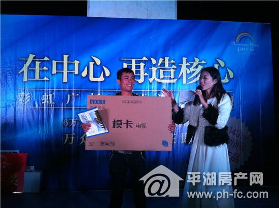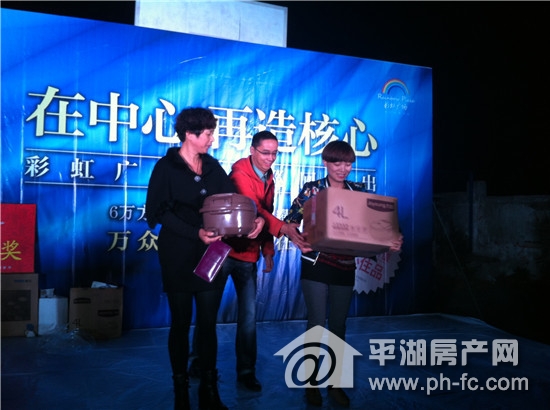 除此之外,还有让现场观众都心跳不已的抽奖环节,法国原装进口红酒也不过是三等奖而已哦,而作为一等奖和二等奖的品牌液晶电视和电饭煲直接让现场尖叫声不断。面对乡亲们的如此热情,彩虹广场唯有以高品质的绝版价值中心地段彩虹广场予以回报,12月份,彩虹公馆即将荣耀开盘。
