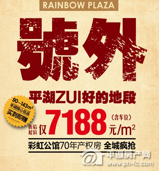 彩虹公馆自建造之时,就受到平湖房产行业内外人士的广泛关注。而对于这样的项目,可能拥有的价格,人们共同的看法是“便宜不了!”。彩虹公馆,再一次让平湖人睁大了眼睛,“才7188元起!”