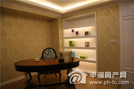 餐厅转角处,设计者十分巧妙的设计了一个敞开式的书房,没有违和感,又十分合理的利用了空间,真是一举两得啊!
