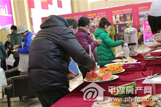 赏阅样板房之余,工作人员还为来宾们准备了精美点心、水果与茶水饮料。