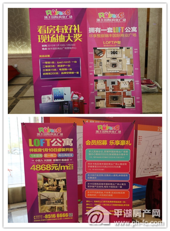 拥有一套瑞丰公寓,尽享整座瑞丰国际商业广场!据工作人员介绍这两天来看样板房的话,更有三重豪礼等着你哦!一重豪礼:凭DM单剪角,携本人身份证,即可领取抽奖券一张,届时将在下周六抽取豪奖哦;二重豪礼:前来参观样板房,即可免费获得精美礼品一份;三重豪礼:存2000抵20000元优惠,更有价值368元礼品一份!既能买到如此好房,又有如此钜惠,还不赶紧去售楼大厅瞧瞧!