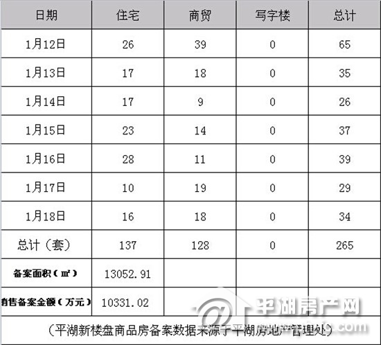 据平湖房产网统计,本周平湖共成交商品房约265套,其中普通住宅的成交量为137套,商贸的成交量为128套。 总成交量相比上周减少31套,其中住宅减少29套,商贸减少2套。相较于上周平湖商品房成交量虽有所回落,但265套的成交量仍是个骄人的成绩,楼市的总体趋势还是成稳步发展之态。