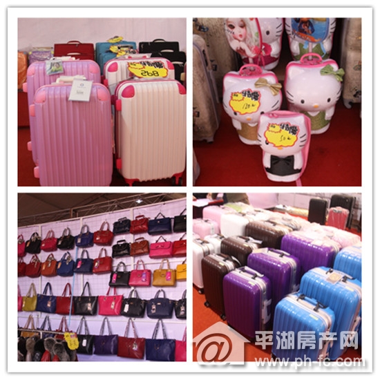 而作为此次的主办方平湖国际箱包城,也特地准备了近50个展位,全方位的为大家准备了各种类型的品牌特卖包包,包含品牌拉杆箱、手提包、钱包、挎包、单肩包、双肩包、学生箱包、品牌服饰(包括男装、女装、童装、围巾、饰品、鞋子等)、品牌童车(包括儿童自行车、儿童推车、婴儿学步车、儿童三轮车等)。放眼过去,琳琅满目的包包,挑花了眼睛,耳畔更不是传来“这个不错”,“这个更便宜”此起披伏的议论之声,你还不抓紧与小伙伴们约起!