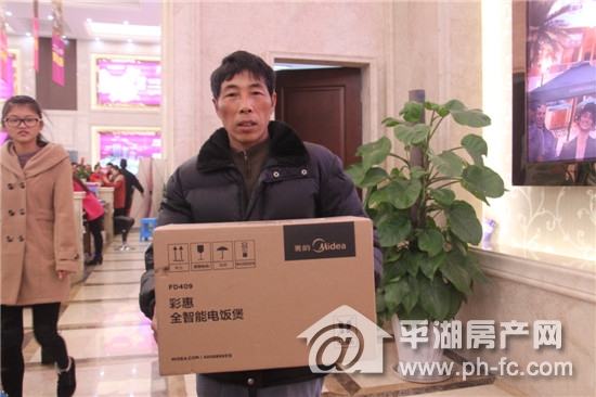 这位幸运的沈先生,就获得了三等奖电饭煲,拿着奖品兴奋的告诉小编,“真是走大运了啊,本来就只是想看看样板房,老婆还想投资这的商铺,就跟过来瞧瞧。这没想到,还能抱个电饭煲回家,这回真是赚到了!”