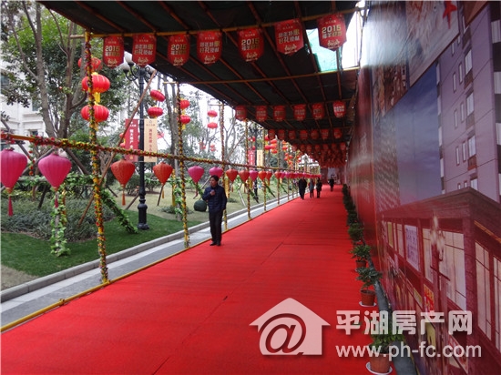 小编刚走进恒大的大门就被浓浓的过年气氛所包围了,沿着挂满花灯的小路一路走去,红色的花灯夹道欢迎,一直送您到会所门口。
