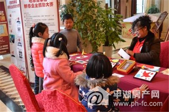 小朋友们在做花灯、折纸,家长们则来到了沙盘附近看看楼盘,询问一下户型与楼盘情况。