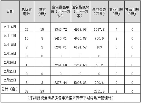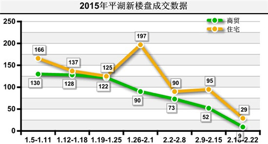 据平湖房产网统计,本周平湖共成交商品房约38套,其中普通住宅的成交量为29套,商贸的成交量为9套,写字楼无成交。 总成交量相比上周减少109套,其中商贸减少43套,住宅减少了66套。