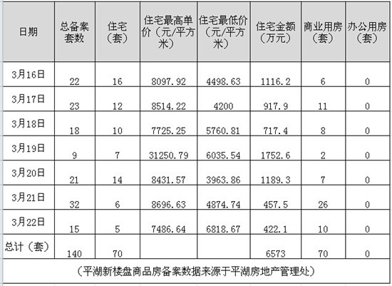 据平湖房产网统计,本周平湖共成交商品房约140套,其中普通住宅的成交量为70套,商贸的成交量为70套,写字楼无成交。 总成交量相比上周减少43套,其中住宅减少了73套,商贸增加了30套。