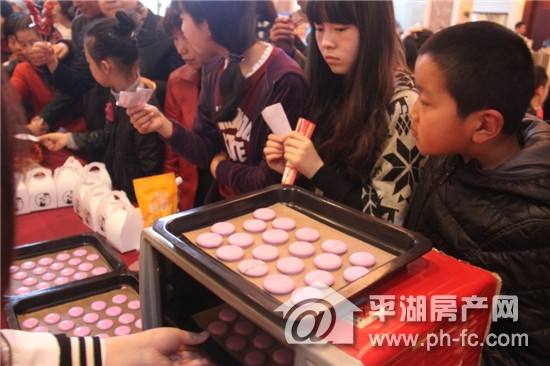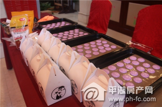 活动现场,有紫红色、青色及草莓巧克力双拼口味的三种马卡龙。今天能吃上一口马卡龙,你的幸福感有没有飙升呢?