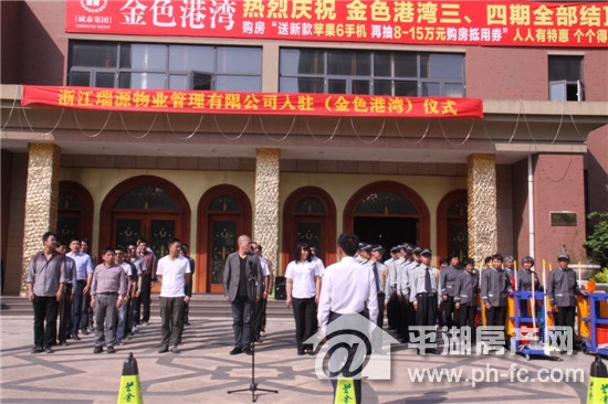 平湖房产网讯:2015年4月30日下午,浙江瑞源物业管理有限公司接管城泰开发的金色港湾小区入驻仪式,在金色港湾售楼处小广场隆重举行。