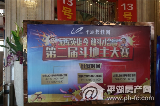 5月1日,踏入碧桂园的售楼大厅,散发了一股激烈的火药味。 “冠军英雄令,敢斗才会赢”的斗地主大赛正在如火如荼的进行着,斗地主讲究的是“农民”的通力合作,联合对战“地主”,所以牌桌上即是朋友,又是对手,每一步都要步步为营,瞧,参赛选手都十分紧张啊!