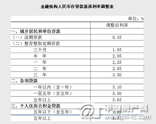 中国人民银行决定,自2015年5月11日起下调金融机构人民币贷款和存款基准利率。金融机构一年期贷款基准利率下调0.25个百分点至5.1%;一年期存款基准利率下调0.25个百分点至2.25%,同时结合推进利率市场化改革,将金融机构存款利率浮动区间的上限由存款基准利率的1.3倍调整为1.5倍;其他各档次贷款及存款基准利率、个人住房公积金存贷款利率相应调整。