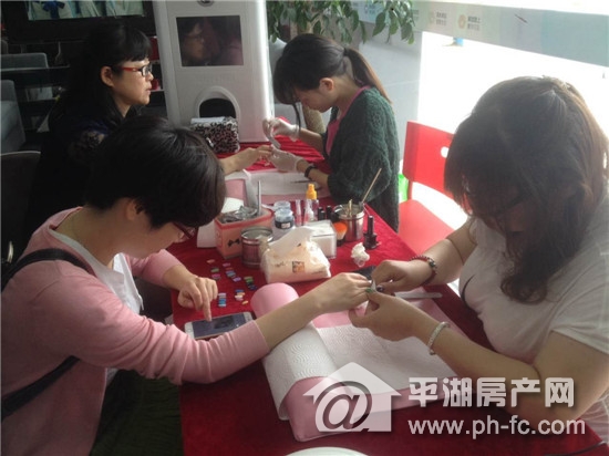 售展中心里,一边是“肉友”们DIY忙,一边是全天候的美甲DIY热,还有就是沙盘边客户们咨询忙。整个现场人潮涌动,气氛嗨。