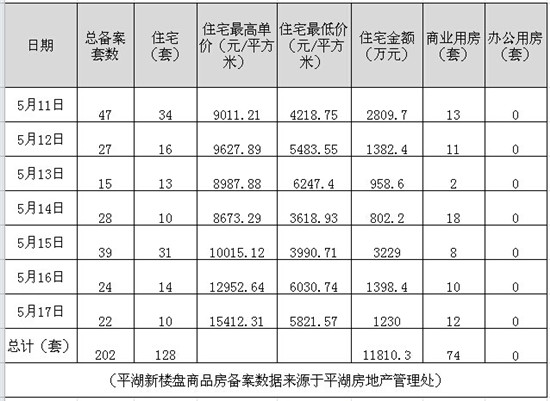 据平湖房产网统计,本周平湖共成交商品房约202套,其中普通住宅的成交量为128套,商贸的成交量为74套,写字楼无成交。 总成交量相比上周减少了8套,其中住宅减少了20套,商贸成交量增加了12套。