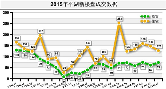 再从成交走势来看,总体波动比较明显。上周成交峰值出现在周一(5月11日),当天成交47套,峰谷出现在周三(5月13日),当天分别仅成交15套。上周每日均成交约28套。