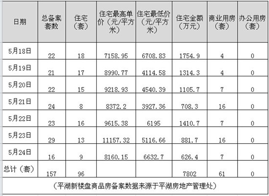 而从住宅成交日单价来看,上周的住宅成交单价跨度明显,住宅***单价出现在5月23日(周六)为11157.32元/㎡,日***单价出现在5月21日(周四),为3927.36元/㎡,相差了7229.96元/㎡。