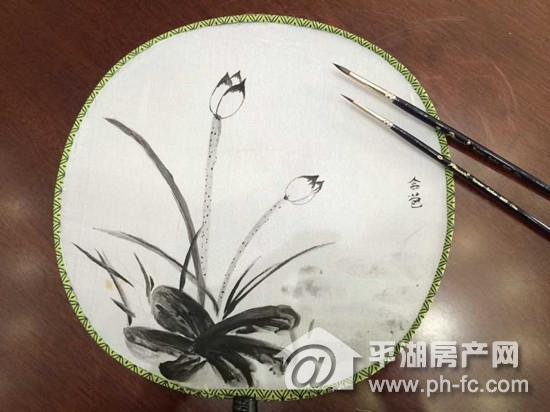 中国水墨画的团扇自古就是美人的专用,画完爸爸的扇子,也不忘让手工老师帮忙给妈妈也画一把,我老妈是个大美人呢!
