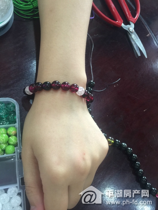 不过这说到心灵手巧那还是女生略胜一筹的。这不,不到一刻钟,一串串美丽的水晶手链就做好啦!这个夏天就这么佩戴在手上,那是妥妥的漂亮!