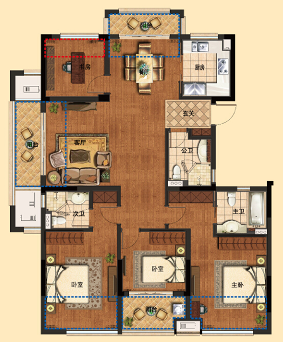 超值实用空间,超高得房率,相当于同等户型永远比别人多一个免费房间!