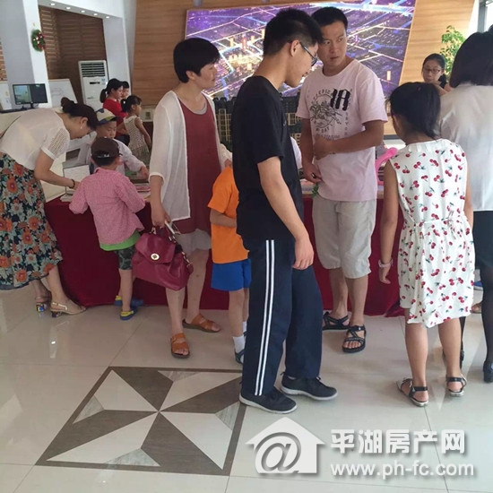 明亮的色彩、可爱的插画、活泼的文字……儿童读物总是让人爱不释手。这些书也是最先被大家领回家的。年龄段稍大的同学则较多选择文字偏多的小说性质的,讲述的一个个故事能带给人更多体悟,丰富情感和心灵。今天,一些来看房的客户在了解换书大会的信息后,也很有兴趣参与换书,“孩子本来就挺喜欢阅读的,领本回家正好”一位客户说。