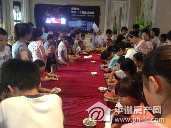 酷暑挡不住出行避暑的客户,炎炎夏日,室外温度近35度,可碧桂园内却是一片欢声笑语,下午一点半,来参加活动的客户,每人领取一个西瓜和道具,更有不少经验老道的小朋友参与其中,看这架势各各都是实力股的样子。