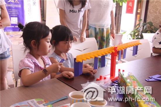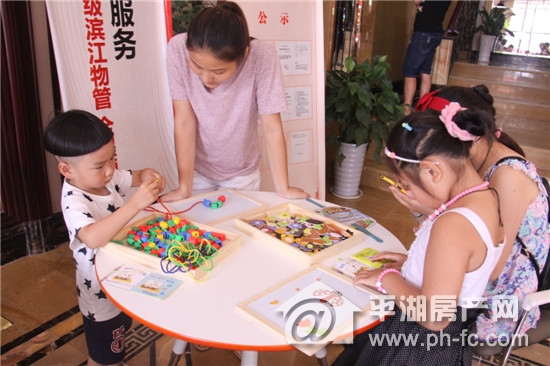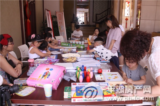 下午一点,售楼处里就聚集了不少家长孩子。瞧,他们已经玩开了。桌上摆放着满满当当的玩具,扑克牌、拼图版、保龄球……小编看到,现场的孩子主要是学前儿童,小的两三岁,大得也不过六七岁。