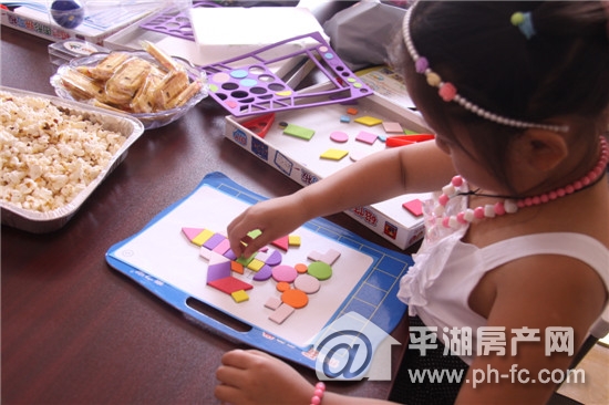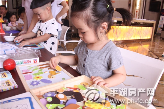 现场的拼图玩具就有好几类,有拼凑动物图案的,还有是拼凑几何形状的。“你不要都从外面往里拼,也可以从里往外……”一位妈妈在孩子身边亲昵指导,看着最后呈现出的漂亮几何图案,孩子乐了,她更欢乐。