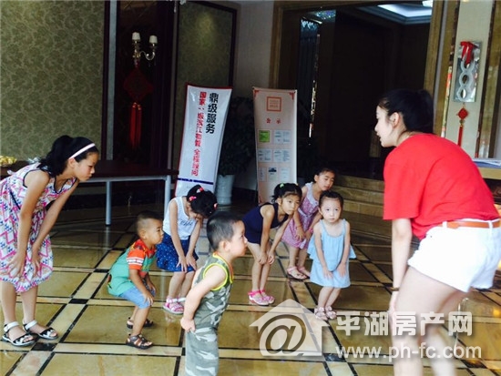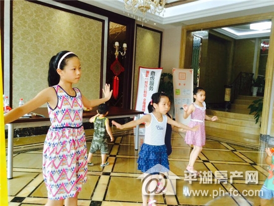 今天,老师教授的是一段适合3—8岁小朋友的可爱舞蹈。“来,我们先双腿并拢坐下去,然后小手伸出来,我们吹泡泡……”美丽高挑的老师可亲切啦,形象的动作比喻让小朋友更好记住。在多遍老师的带领之后,大部分孩子已基本掌握这段舞蹈了,个别岁数小的会慢一点啦!