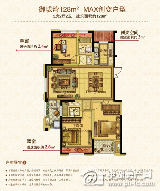 约128㎡热销三房,三面景观阳台,采光、赏景俱佳!请鉴赏