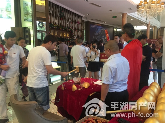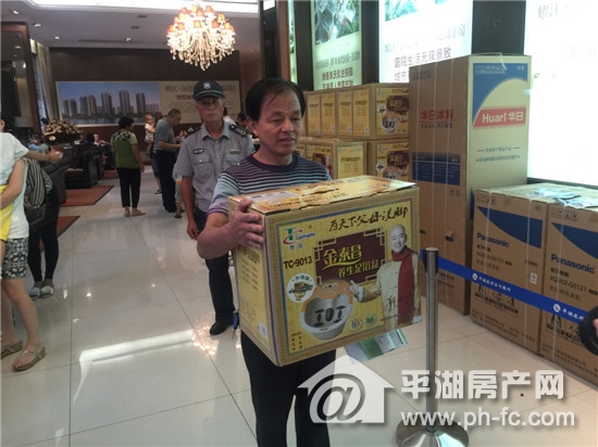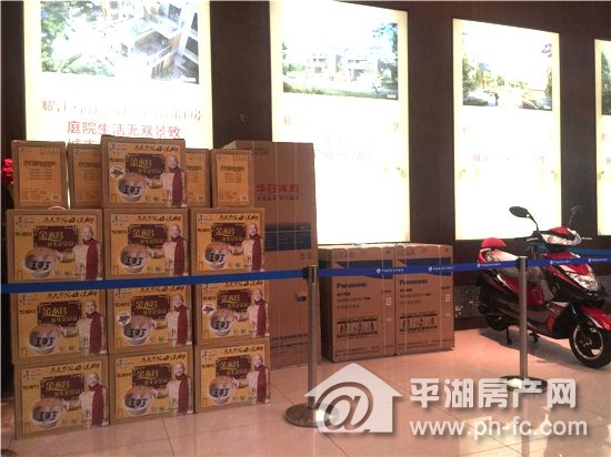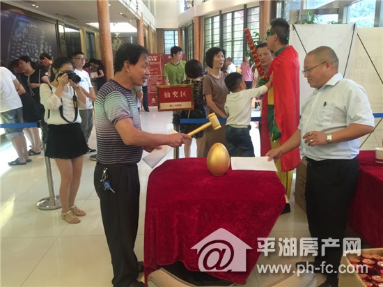 据工作人员介绍此次开盘除了存1千抵3万的优惠活动,现场更有砸金蛋百分百中奖活动,泡脚桶、电冰箱、电瓶车等等,如此实用的家电,都让在场的购房者心中惊喜。