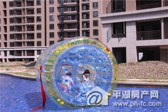 吃饱喝足,既然是party那又怎么能少了游戏和抽奖环节呢?随着景乐雅苑二期中庭初现,实景园林,小桥流水俨然美如画,前来参加活动老业主们都按捺不住激动的心情,先回家看看!而今天我们也将在这展开一场妙趣横生的水上party。如果这一个暑假你都没有玩过水,那么你绝对不能错过这个水上滚筒游戏。当人钻进滚筒球里面,就仿佛进入了一个神奇的水上世界,双脚用力向前蹬,滚筒球溅起的水花伴随着孩子们清脆的笑声,让人仿佛回到美好的童年的时代。