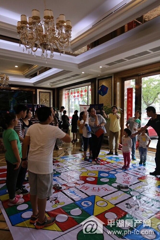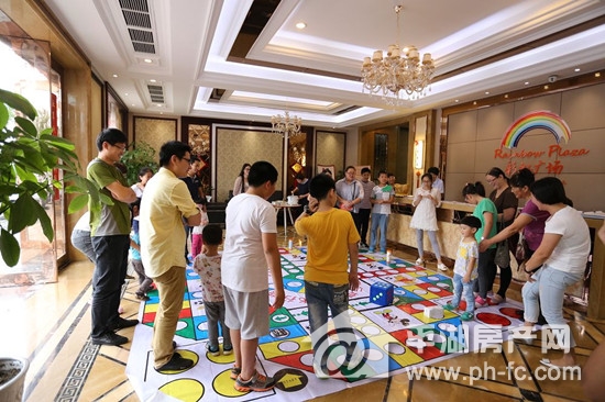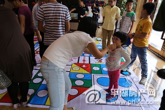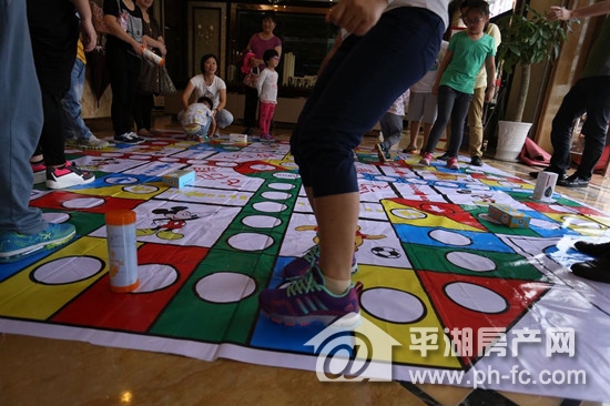 10月1日下午,不少业主和客户带着自己的孩子来到售楼处,侃侃而谈起当年玩飞行棋连番胜利的战绩,此次真人飞行棋大赛更有精美的礼品在棋格上,看来不仅要扔的数字大,更要巧,才能收集更多的奖品。
