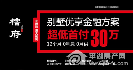 优享“首付探底”——不用等年底收款;不用挪动其他资金;不用等到无墅可挑的那一天!现在,只需要30万首付,即可拥有一套日思夜想的榕府新别墅。
