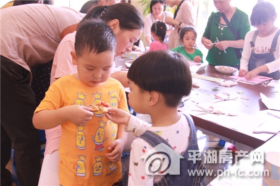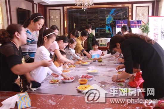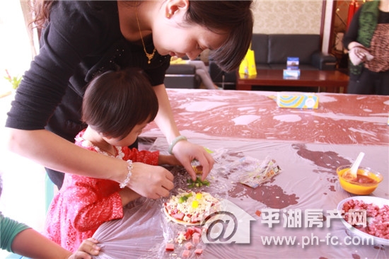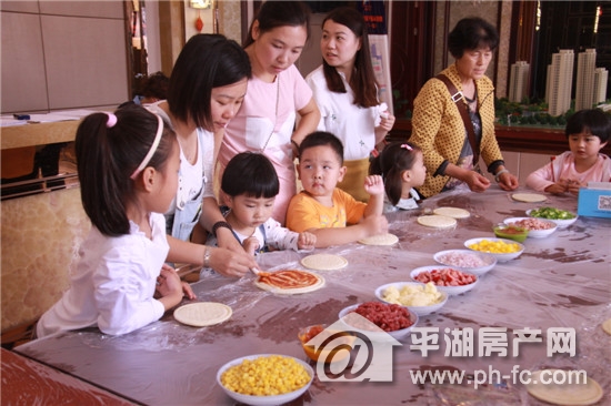 下午一点多,小编来到彩虹售楼处就被桌子上的丰富配料吸引了,牛肉丁、火腿丁、玉米粒、青椒丁、特制酱料、芝士……明快的颜色及透发出的香味早已让孩子们激动不已。