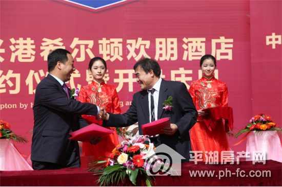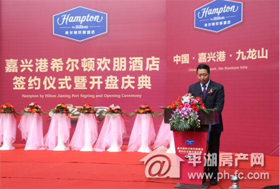 嘉兴港希尔顿欢朋酒店举行了隆重的品牌签约仪式暨开盘庆典。嘉兴港区管委会、九龙山管委会、上海九龙山旅游股份有限公司、希尔顿欢朋(中国)发展副总裁、XX酒店管理公司和山鑫置业开发有限公司等多方领导亲临现场,参加了本次庆典,并与嘉兴市、嘉兴港区、平湖市多家媒体、以及慕名前来的数百位客户共同见证了这一历史性时刻。